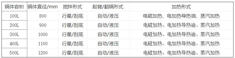 攪拌方式采用特殊的傾斜轉(zhuǎn)動,行星攪拌器與鍋體充分接觸,實現(xiàn)傳動公轉(zhuǎn)與自轉(zhuǎn)的不整數(shù)傳動比,使鍋內(nèi)無攪拌死角。 使用先進的傳動與密封結(jié)構(gòu),使傳動部分與鍋內(nèi)潔凈、衛(wèi)生。 型號根據(jù)實際容積可分為100L、200L、 300L、400L、500L等規(guī)格,非常規(guī)容量的產(chǎn)品可以加工定制。 具有易于操作,工作效率高,耗能低,使用壽命長,結(jié)構(gòu)緊湊,維修方便等特點。